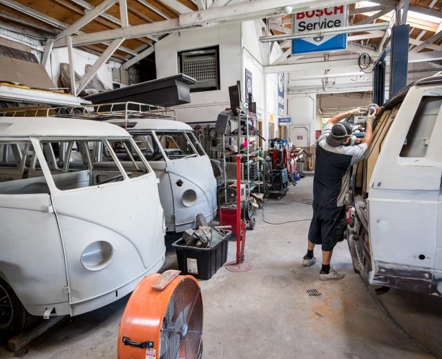 Kombi Haus is slowly taking over a city block in Sacramento’s Oak Park neighborhood. Owner Justin Campbell opened the Volkswagen repair and restoration shop 20 years ago as a small garage on 34th Street. The business now covers over 12,000-square-feet of space across three buildings in the Triangle District.