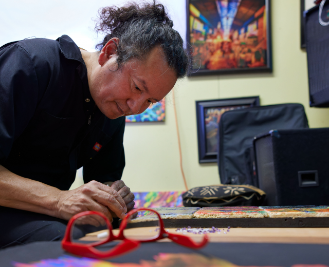 “When you talk about business, ours has allowed us to bring our culture back,” Tayaba notes. “Building our dance arbor, having our ceremonies — obtaining eagle feathers, abalone, clam shells, pine nuts, items that aren’t easily foraged today — it all costs money. Now we hold workshops, classes, dance practices. We’re trying to rebirth weavers, because our grandmothers were weavers.”
