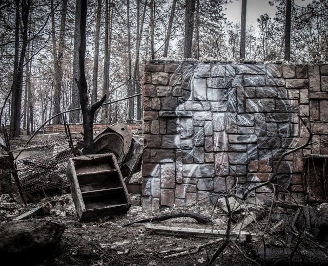 A muralist and photographer team up to paint and memorialize the ruins of the Camp Fire in Paradise