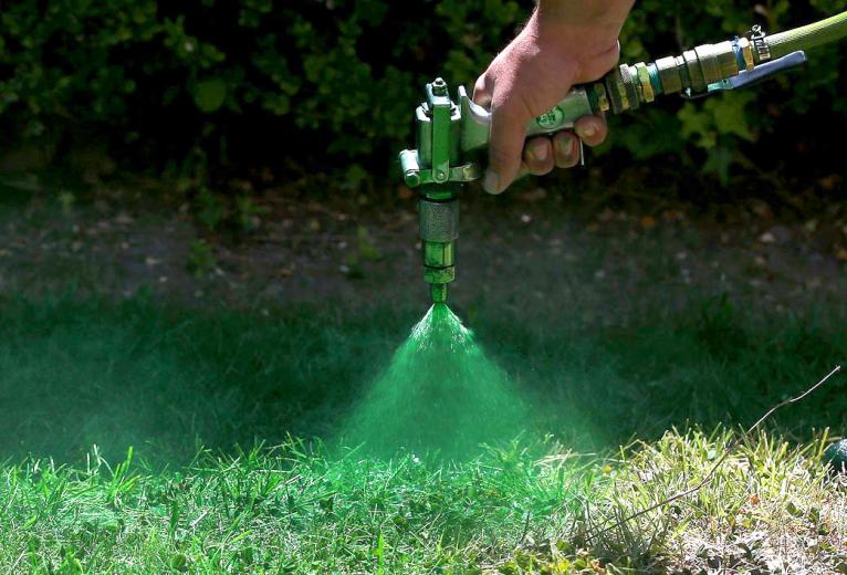 Short on water for your grass? Just add paint, says Bill Schaffer, owner of Brown Lawn Green in Dixon.