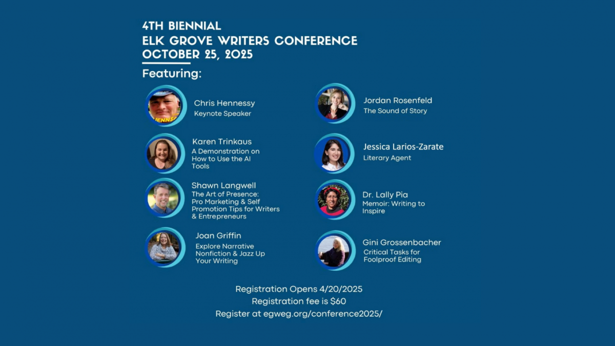 Sponsored by the Elk Grove Writers Guild, this Fall conference will offer a full day of learning by NorCals Publishing powerhouse speakers