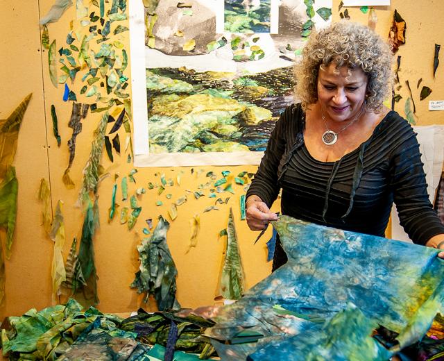 Merle Axelrad says she fell into the medium of fabric collage 27 years ago when she was nine months pregnant, on maternity leave from her job as an architect, and made a baby quilt. Now, most of her works are public art, corporate and private commissions.