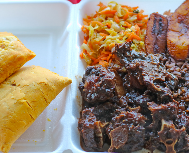 The market-kitchen hybrid offers Afro-Caribbean favorites like jerk chicken, curry goat and oxtail.