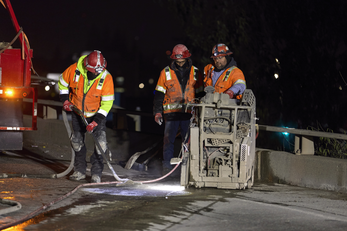 Caltrans began the $483 million Fix 50 project in March 2021 to add HOV (high occupancy vehicle) lanes and repair aging pavement on the heavily trafficked Highway 50 corridor. It might be the middle of the night, but cars and trucks are zipping by Gustavo Pena, foreman for Bay Line Cutting & Coring. His crew was contracted by Caltrans to repair spacer joints on the bridges.