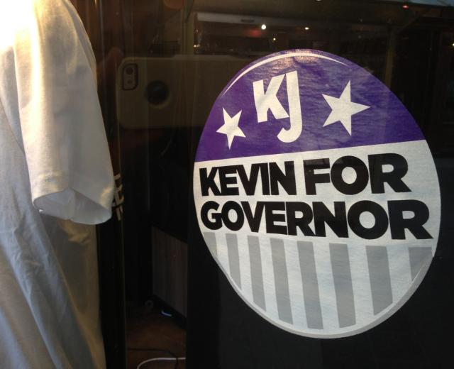 It isn’t the official start for a gubernatorial run, but Getta Clue apparel store at the Downtown Plaza mall reports to have sold several hundred ‘Kevin For Governor’, ‘Thank You KJ’ and other unauthorized Kings celebration t-shirts for $20 apiece.