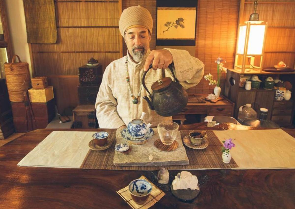 Greenmountain got into this ritual after meeting a teacher 27 years ago who taught him beyond tea culture, opening up an “entire universe” for him. For Greenmountain, it’s the whole experience, such as the tea art, aesthetics, meditation practice, writing poetry, singing (Greenmountain is a musician), that adds depth to his life. It’s also the “sense of beauty in the ceremonial,” the way the table is set up, the tea set, the tea room, the tea space, the atmosphere, that awakens his innate senses.
