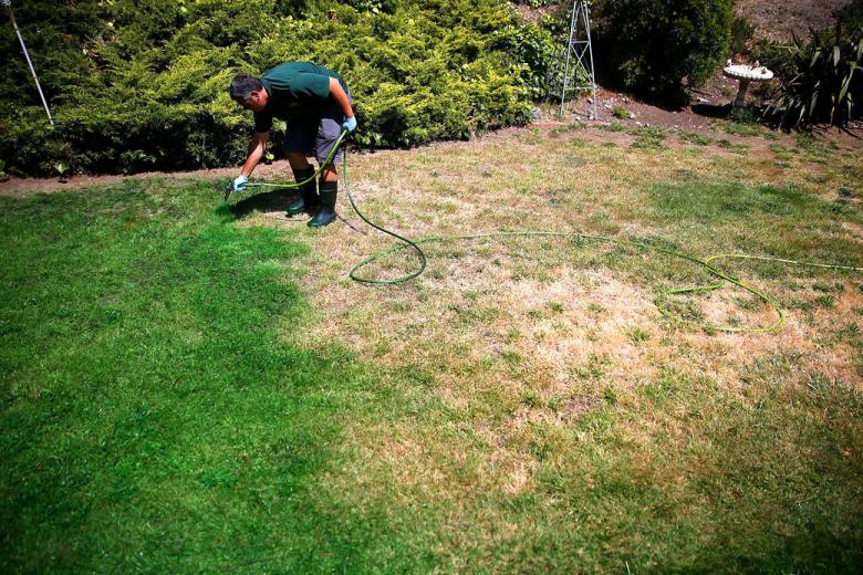 Short on water for your grass? Just add paint, says Bill Schaffer, owner of Brown Lawn Green in Dixon.