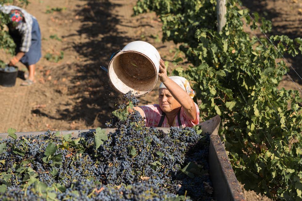A woman works in a vineyard in Moldova. Like California, the